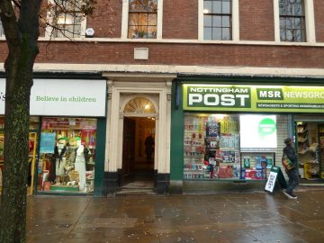 As Chawton House Library celebrates 200 years since the publication of Emma, Bromley House Library is currently celebrating its’ 200th birthday and has recently featured in both local and national news reports. Founded in 1816, it is an independent lending library situated in the centre of Nottingham and one of the few remaining subscription libraries in the country. The image shows the entrance to the library squeezed between modern shops and very easy to miss.
