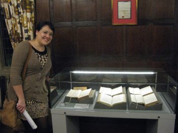 Dr Sophie Coulombeau admiring the works on display at Chawton House Library