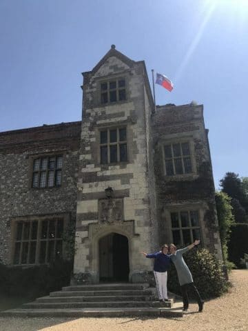 Our new NAFCH President, Janine Barchas and Sandra Clark outside Chawton House flying the Texan flag