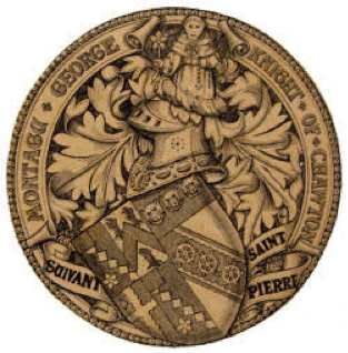 The third armorial circular bookplate (below), in the style of an ancient seal, is the most commonly seen, Montagu putting it in many of those books that remained in the combined library collection once Godmersham was sold in 1874. This plate shows all the heraldic elements of the family heritage with the addition of the arms of the family of his wife Florence Hardy: