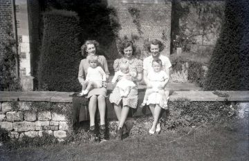 The picture below, taken in 1942 on the Lutyens terrace of Chawton House, shows Peggy (on the left) in 1942. Her son, the present owner, Richard, is sitting on her knee. Next to her is Peter’s sister, Jeanne. Her husband, who took this photo, was a naval officer on leave from serving on the artic convoys to Russia. On the right is Betty Rose, married to a serving army officer. She later became the curator of the Jane Austen museum.