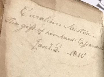 In this free talk, available on our Youtube channel, Chawton House’s Curator Emma Yandle will give a behind-the-scenes look at our Christmas display, Literary Gifts: books given as presents. This explores the long history of giving books as a gift, through the handwritten inscriptions left behind in works by women writers now held in Chawton House’s collection. These traces offer a tantalising glimpse into the history of the book as a material object, with their records of past owners and relationships. What can they tell us about the reading habits in the 18th and 19th centuries? They often reveal as much about the giver as the recipient. Gifts in our collection vary widely: instructive works are presented by a father to a daughter; an aunt gives a gothic novel to her niece; Jane Austen’s sister Cassandra gives a book of plays to her niece and Caroline.